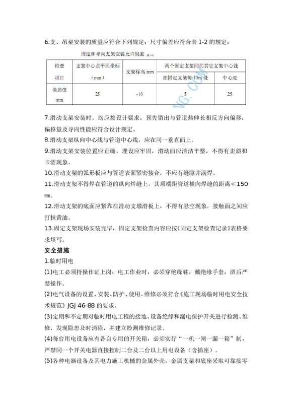 1.对材料进行到货检验和验收检查,验材质证明、生产厂家、规格型号,确认原材与设计图纸、规程要求无误后方可进行切割、组装焊接。2.固定支架、导向支架、滑动支架的制作和安装应有技术交底,根据技术交底下料
