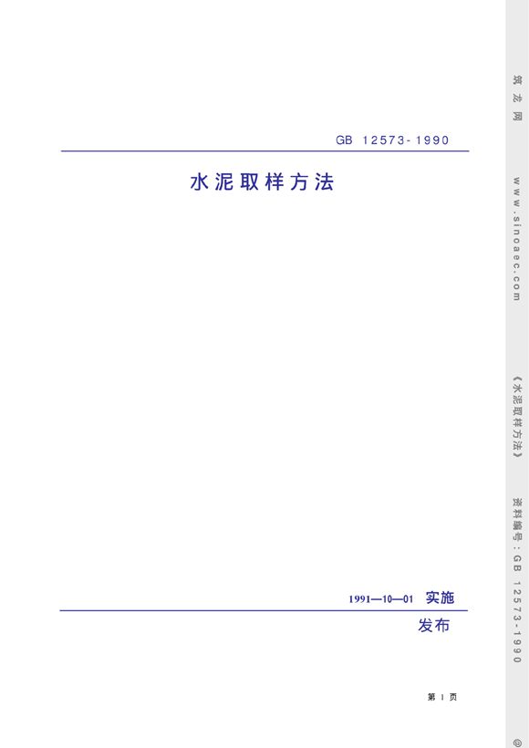 本文档资料为GB12573-1990水泥取样方法,内容详细清晰,具有很高的参考价值,可下载参考使用。