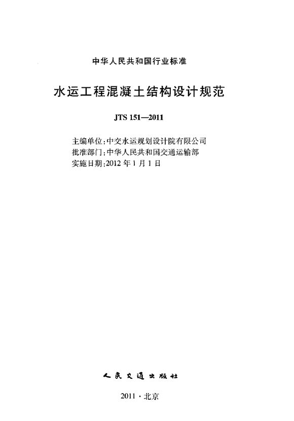 本资料为:《水运工程混凝土结构设计规范》(JTS151-2011),可供参考。