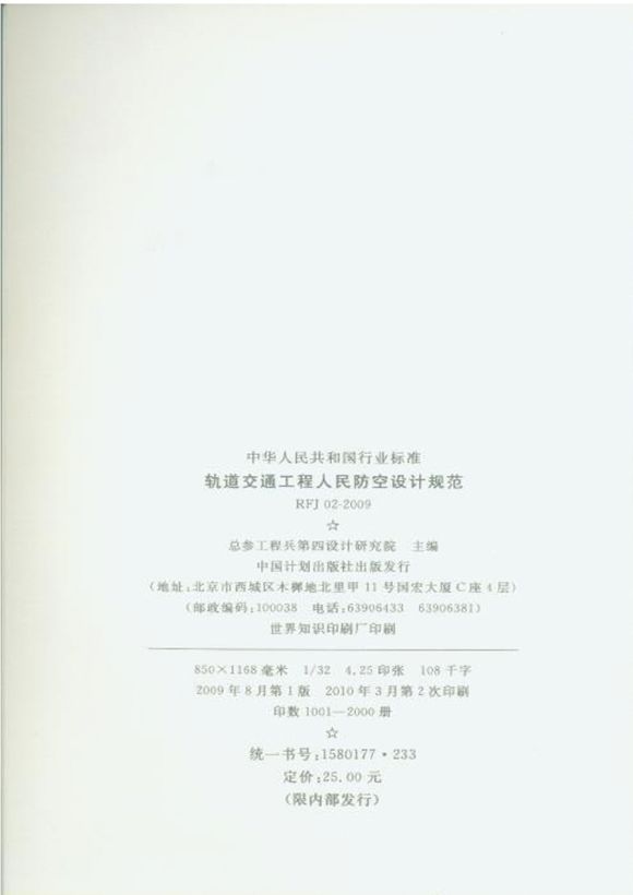 RFJ02-2009 轨道交通工程人民防空设计规范