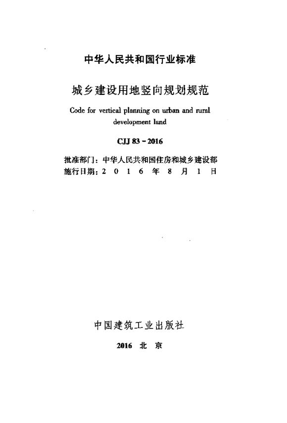 2016最新规范【高清正版】CJJ83-2016 城乡建设用地竖向规划规范