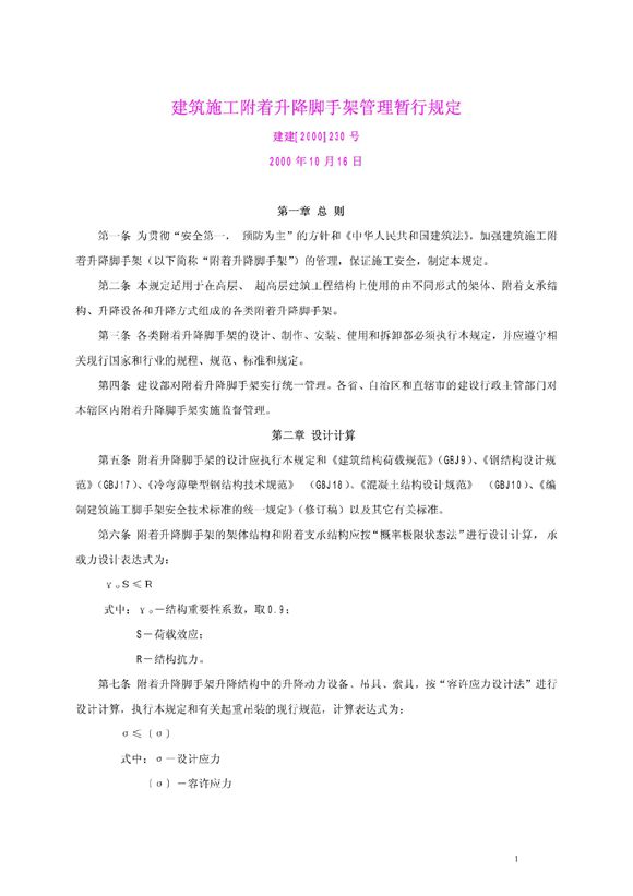 本文档为建筑施工附着升降脚手架管理暂行规定,内容详细丰富,设计精准全面,可供网友参考下载。