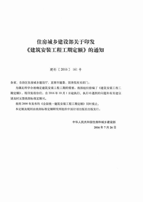2016最新定额《建筑安装工程工期定额》TY01-89-2016工程定额