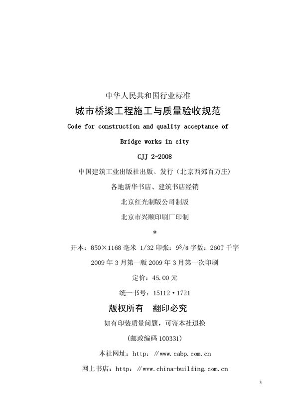 《城市桥梁工程施工与质量验收规范》(CJJ2-2008)