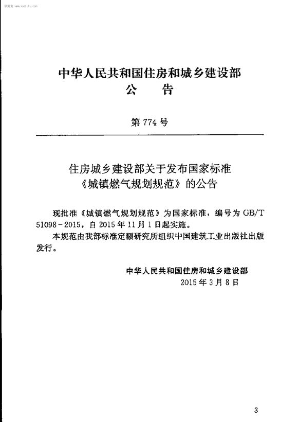 城镇规划新标准GBT51098-2015《城镇燃气规划规范》