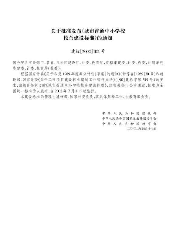 城市普通中小学校校舍建设标准(含教学楼、办公用房、生活服务用房)