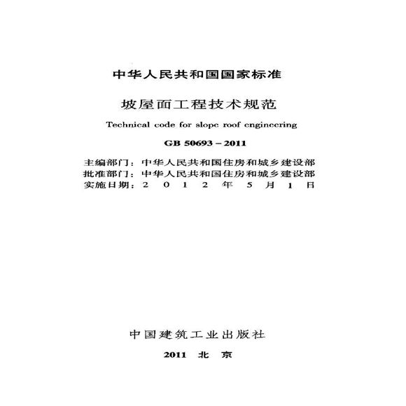 为提高我国坡屋面工程技术水平,确保工程质量,制定本规范。本规范适用于新建、扩建和改建的工业建筑、民用建筑坡屋面工程的设计、施工和质量验收。
