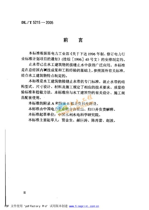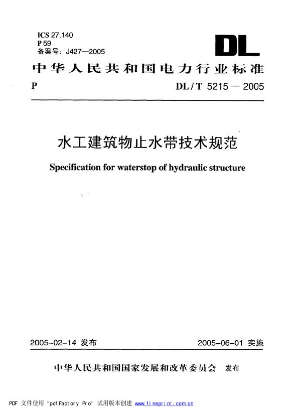 DLT5215-2005水工建筑物止水带技术规范~~~~!