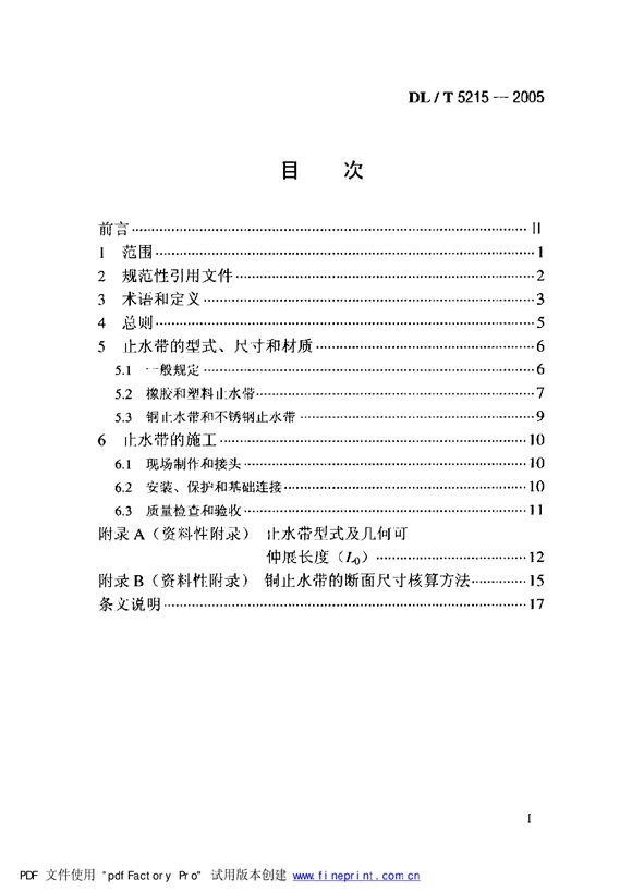 DLT5215-2005水工建筑物止水带技术规范