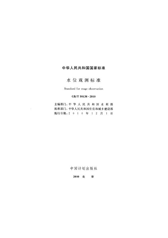 本资料为:《水位观测标准》(GB∕T50138-2010),可供参考。