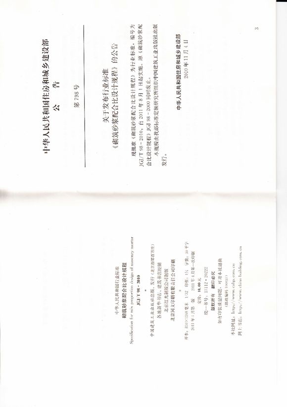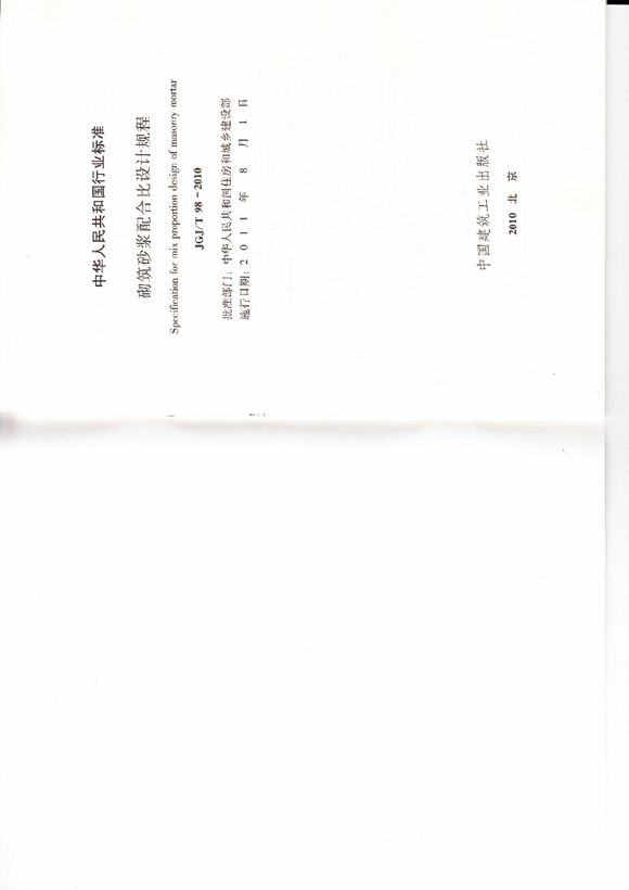 本资料为:《砌筑砂浆配合比设计规程》(JGJ∕T98-2010),可供参考。