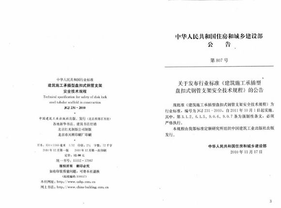 JGJ231-2010建筑施工承插型盘扣式钢管支架安全技术规程附条文说明