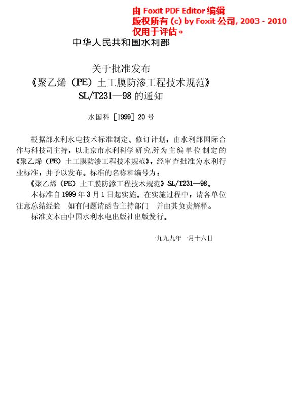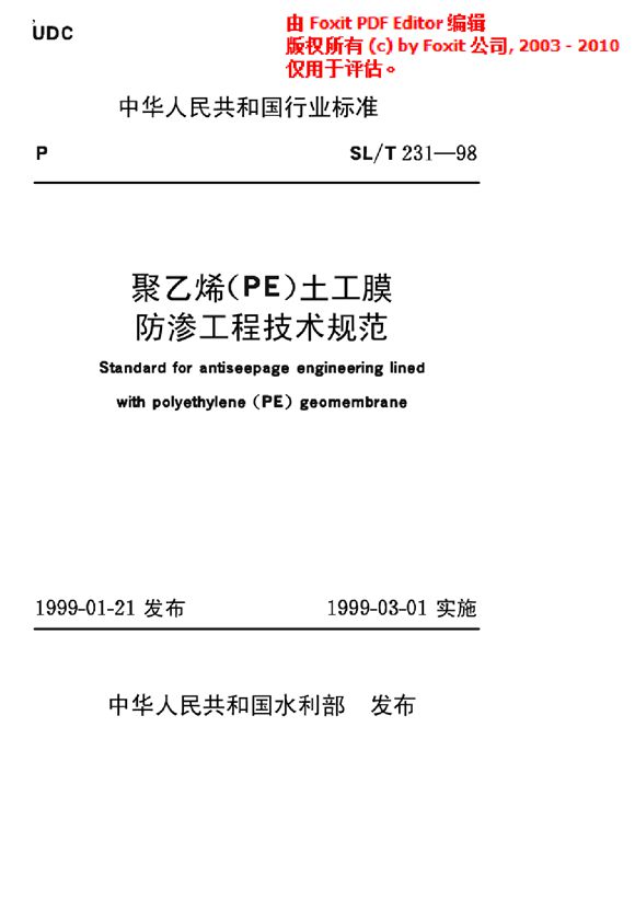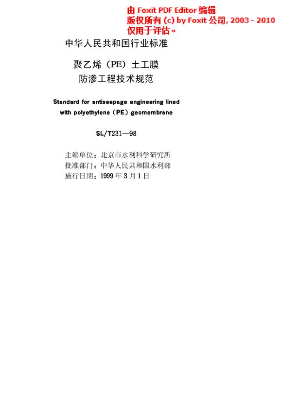 本资料为:《聚乙烯(PE)土工膜防渗工程技术规范》(SL231-98),可供参考。