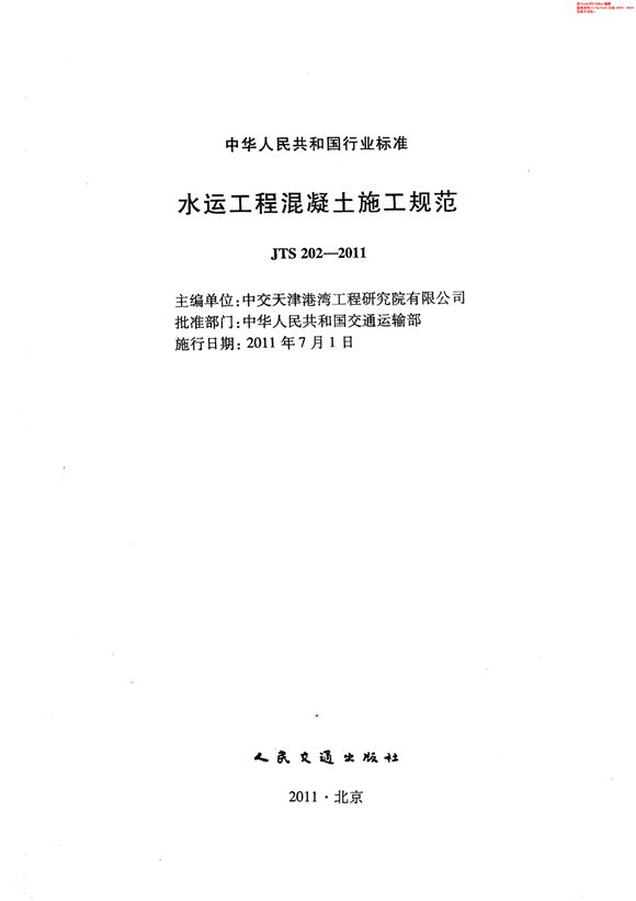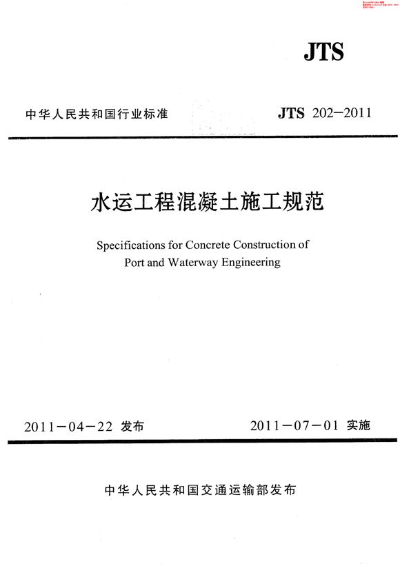 本资料为:《水运工程混凝土施工规范》(JTS202-2011),可供参考。