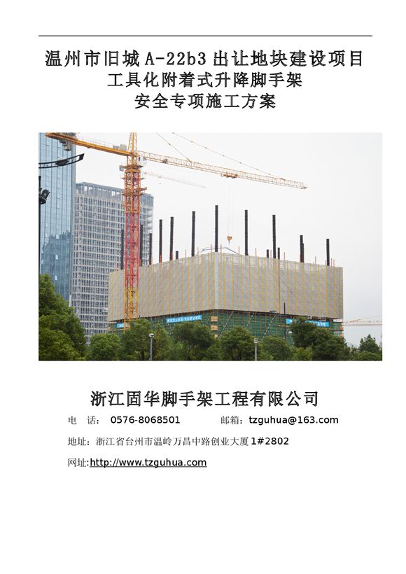 本项目为温州万科城市广场,建筑外架整体提升爬架施工方案,本项目为25层的高层住宅建筑,地下室1层,工期8个月,使用架体为全钢防火爬架。