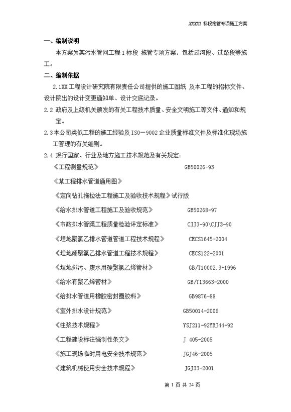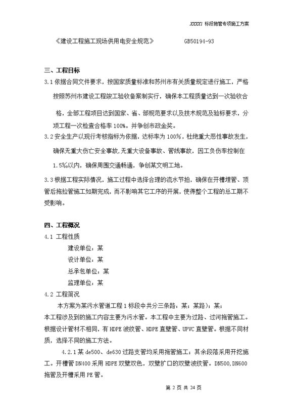 本工程涉及到的施工内容主要为污水管。本工程中主要为过路、过河拖管施工。根据设计管材不相同,有HDPE波纹管、HDPE直壁管、UPVC直壁管。根据不同材质,选择不同的施工方法。