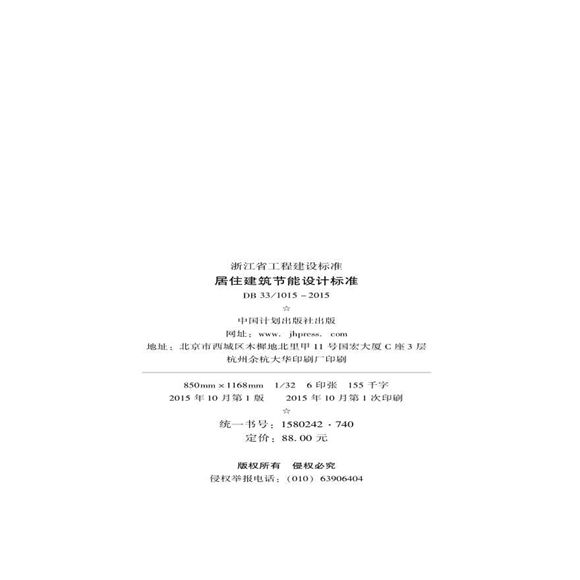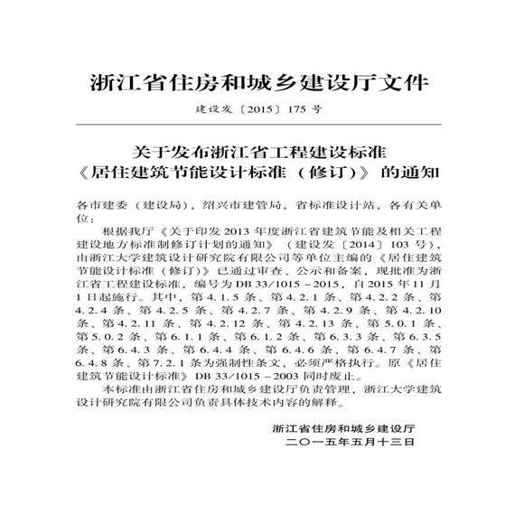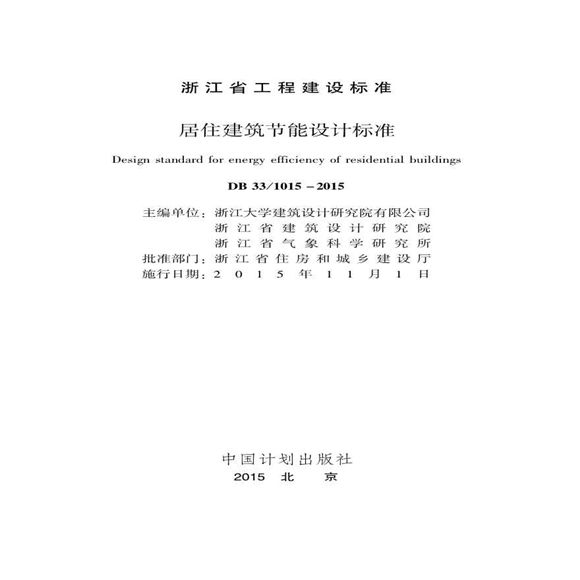 DB33/1015-2015居住建筑节能设计标准-浙江省工程建设标准