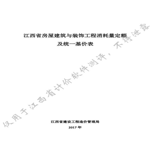 江西省房屋建筑与装饰工程消耗量定额及统一基价表(2017版),pdf格式,698页。本定额包括:土石方工程,地基处理与工程,,砌筑工程,混凝土及钢筋,金属结构工程,木结构工程,门窗工程,屋面及防水工
