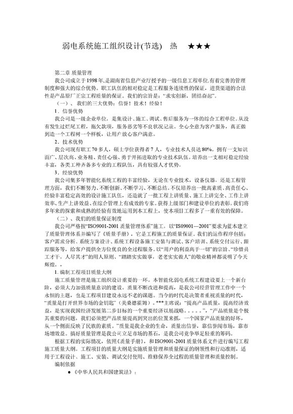 住宅小区弱电系统施工方案,施工质量管理是施工组织设计重要的一环。本智能化弱电系统工程建设要上一个新台阶,必须大力加强质量意识的建设。
