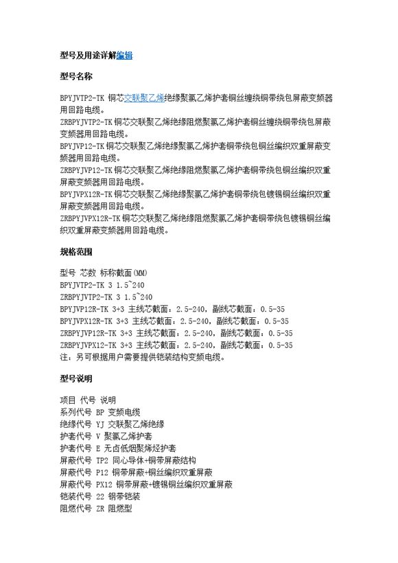 变频电缆型号规格(里面有各种型号规格的变频电缆)