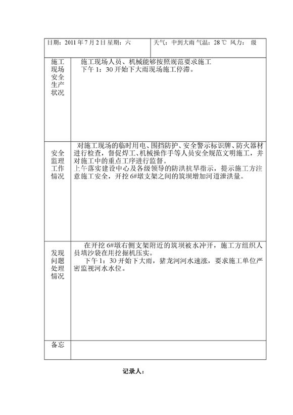 本文档资料为安全监理日志范本,内容详细清晰,具有很高的参考价值,可下载参考使用。