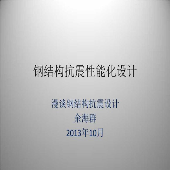本资料为钢结构抗震性能化设计,主要内容:问题探讨抗震设计基本概念结构的能量吸收能力日本抗震设计路径支撑的屈强比与结构的塑性变形能力阻尼的影响周期的影响后期刚度的影响二阶效应的影响影