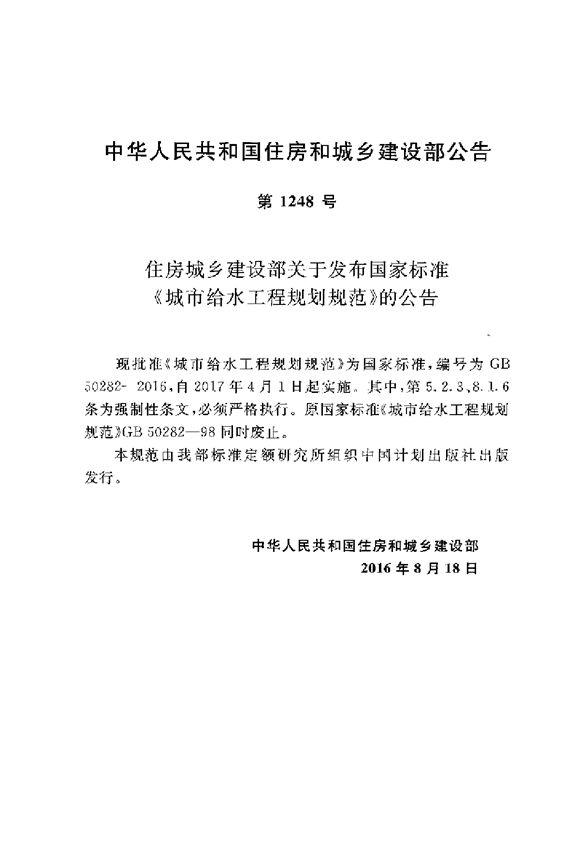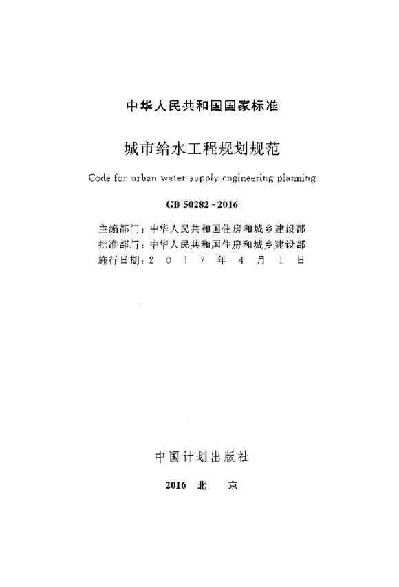 《城市给水工程规划规范》GB50282-2016,2016年最新版本,增加海绵城市相关内容。