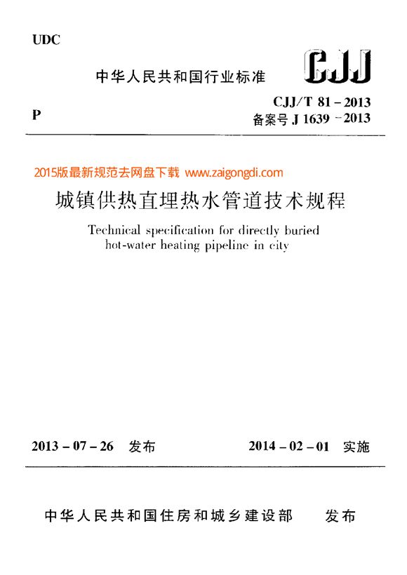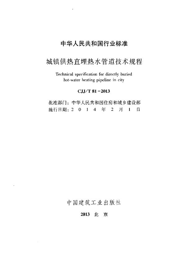 CJJT81-2013城镇供热直埋热水管道技术规程(供热)