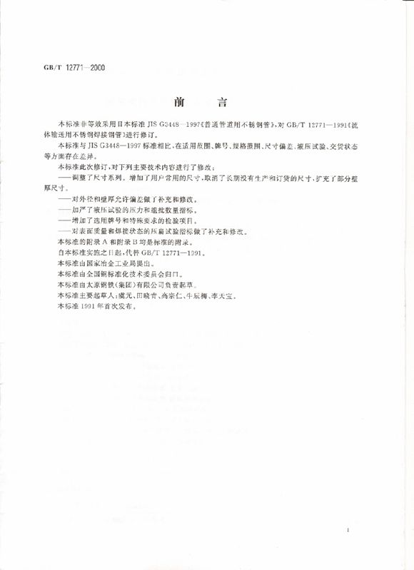 GB12771-2000流体输送用不锈钢焊接钢管