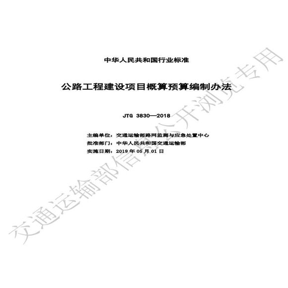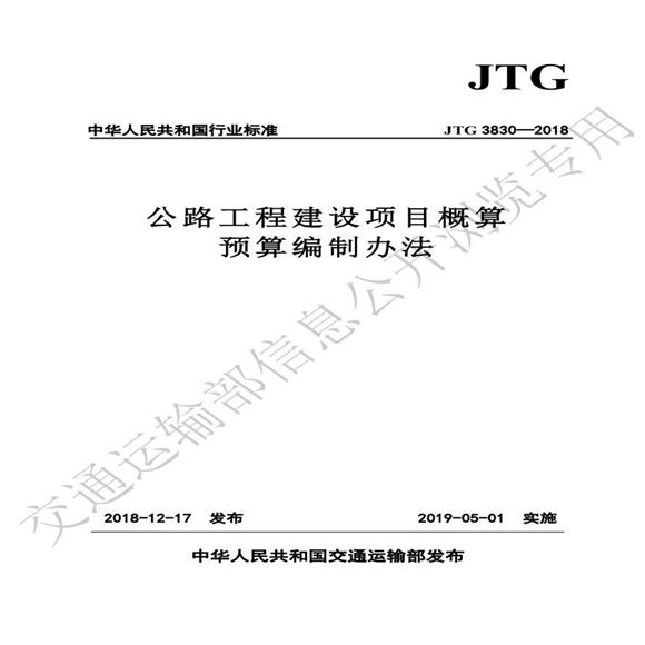 部颁《公路概预算编制办法2018》,2019年5月1日实施。
