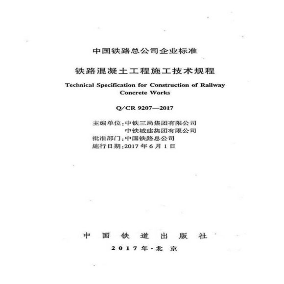 《铁路混凝土工程施工技术规程》(QCR9207-2017)《铁路混凝土工程施工技术规程》(QCR9207-2017)《铁路混凝土工程施工技术规程》(QCR9207-2017)《铁路混凝土工程施工技术规
