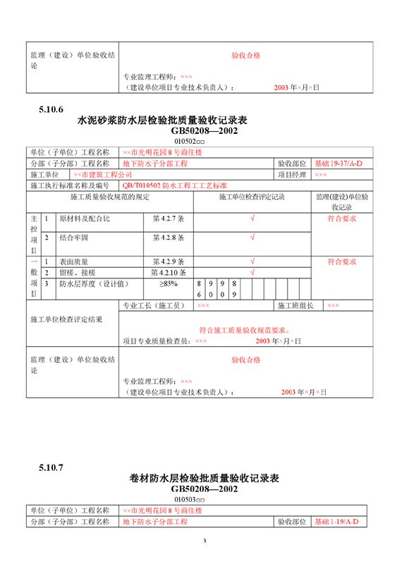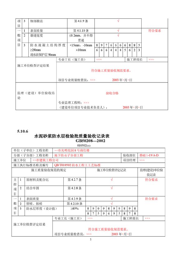 检验批质量验收记录表填写范例检验批质量验收记录表填写范例,详见附件
