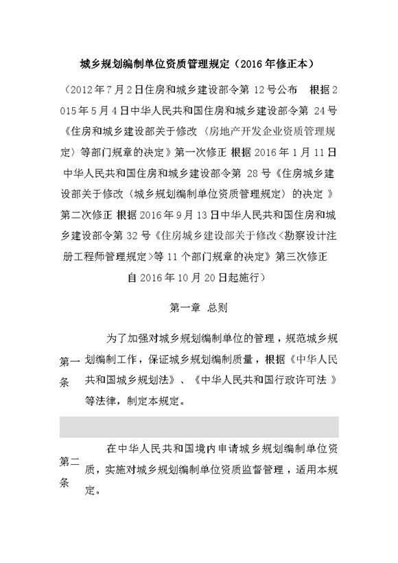 第一次修正根据2016年1月11日中华人民共和国住房和城乡建设部令第28号《住房城乡建设部关于修改〈城乡规划编制单位资质管理规定〉的决定》第二次修正根据2016年9月13日中华人民共和国住房和城乡