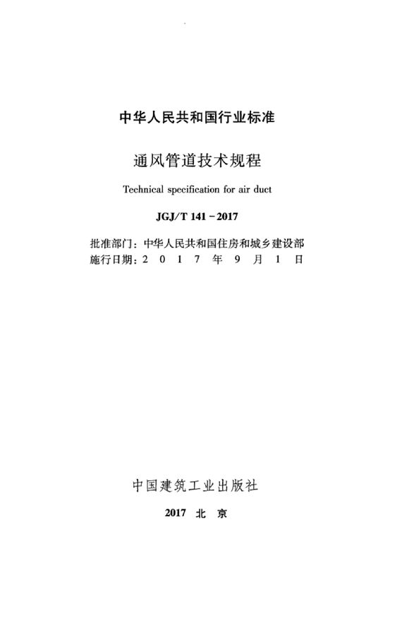 JGJT 141-2017 通风管道技术规程