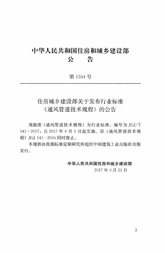 2017年9月1日实施的新规程,替代2004版本。增补新的通风管道材料及制作技术。