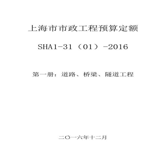 上海市最新版本定额-上海市市政工程预算定额(SHA1-31(01)-2016),内容全面,可供参考下载。