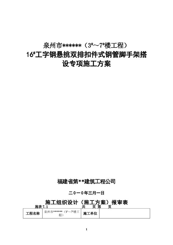 工字钢悬挑钢管脚手架施工方案(附示意图)
