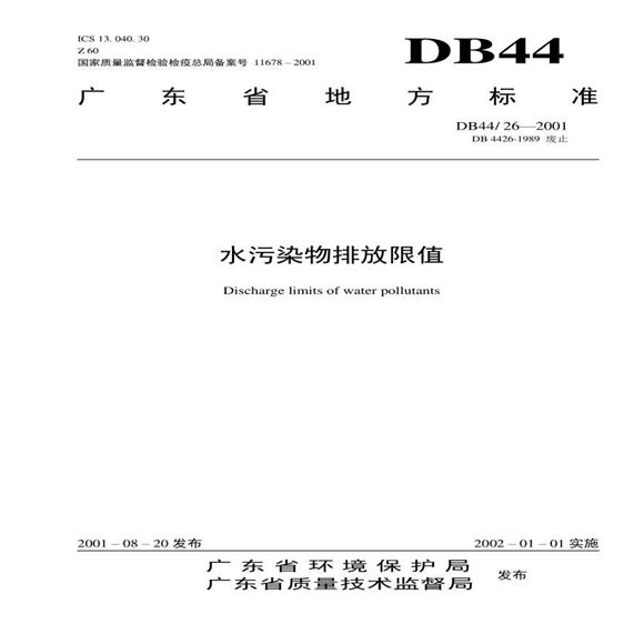 广东省污水综合排放标准DB4426-2001.pdf,内容清晰,供学习。