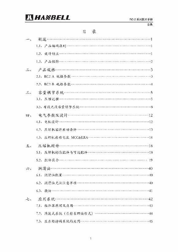 上海汉钟RC2系列螺杆压缩机技术手册,主要是中高温型压缩机资料,包含使用要求,性能参数
