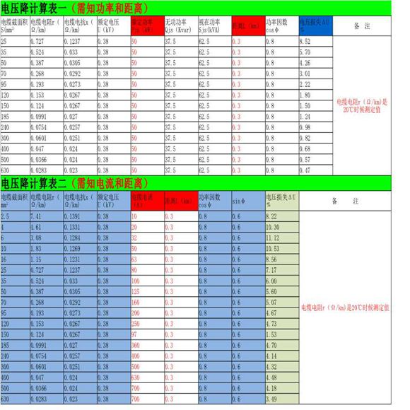 电缆电压降计算表格,输入参数自动计算。电缆电压降计算表格,输入参数自动计算。