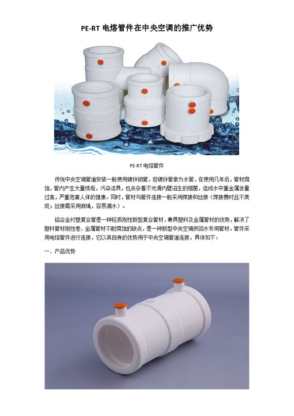 铝合金衬塑复合管是一种轻质刚性新型复合管材,兼具塑料及金属管材的优势,解决了塑料管材刚性差、金属管材不耐腐蚀的缺点,是一种新型中央空调供回水专用管材。管件采用电熔管件进行连接,它以其自身的优势用于中央