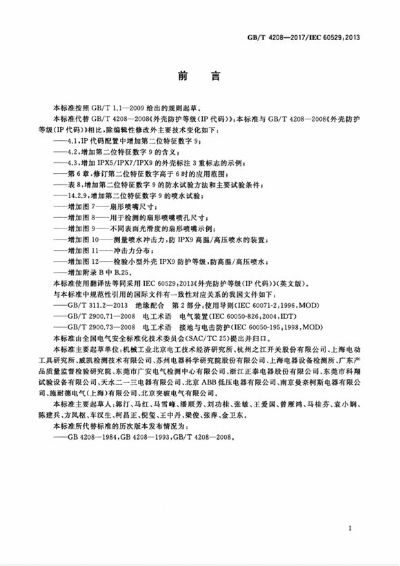 本文档为:GBT4208-2017外壳防护等级(IP代码),本标准自2018-02-01开始实施。