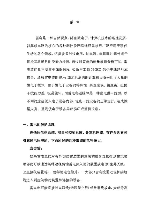 雷电是一种自然现象。随着微电子、计算机技术的迅速发展,以集成电路为核心的各种测控及网络通讯系统已广泛应用于现代生活的各个领域。这类设备对过电压、过电流、电磁脉冲等外来干扰极其敏感且耐受能力极低。通过对