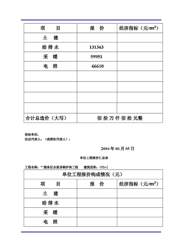 报价汇总表及单位工程报价