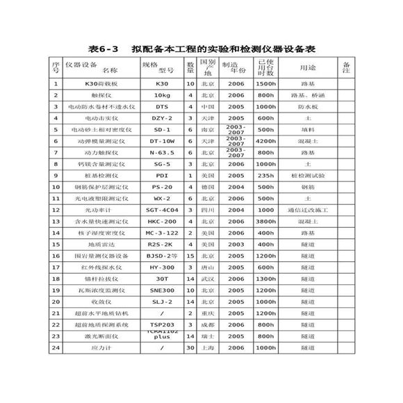 拟配备本工程的试验和检测仪器设备表