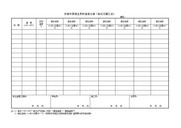 同条件混凝土养护温度记录(单位工程汇总)