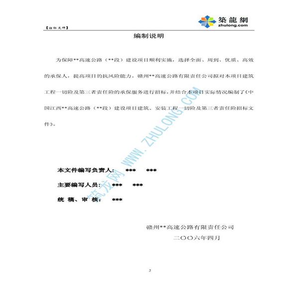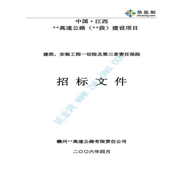 工程一切险及第三者责任险招标文件