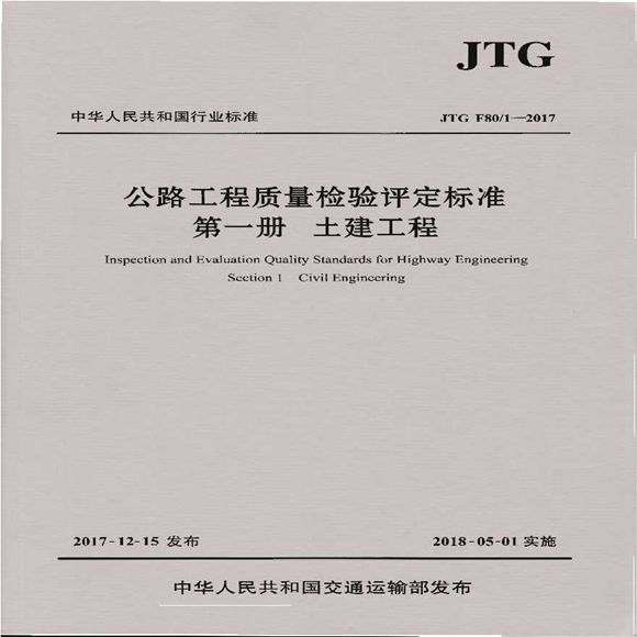 公路工程质量检验评定标准2017版第一册土建工程正文及印刷勘误