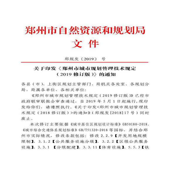 2019版郑州市城市规划管理技术规定