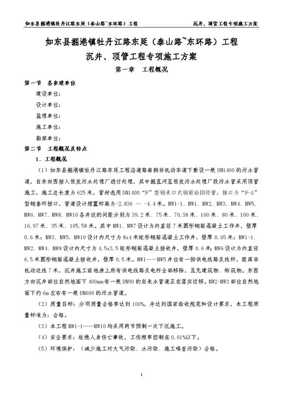 泥水平衡顶管施工、沉井制作及下沉施工、周边构建筑物及管线压密注浆加固措施